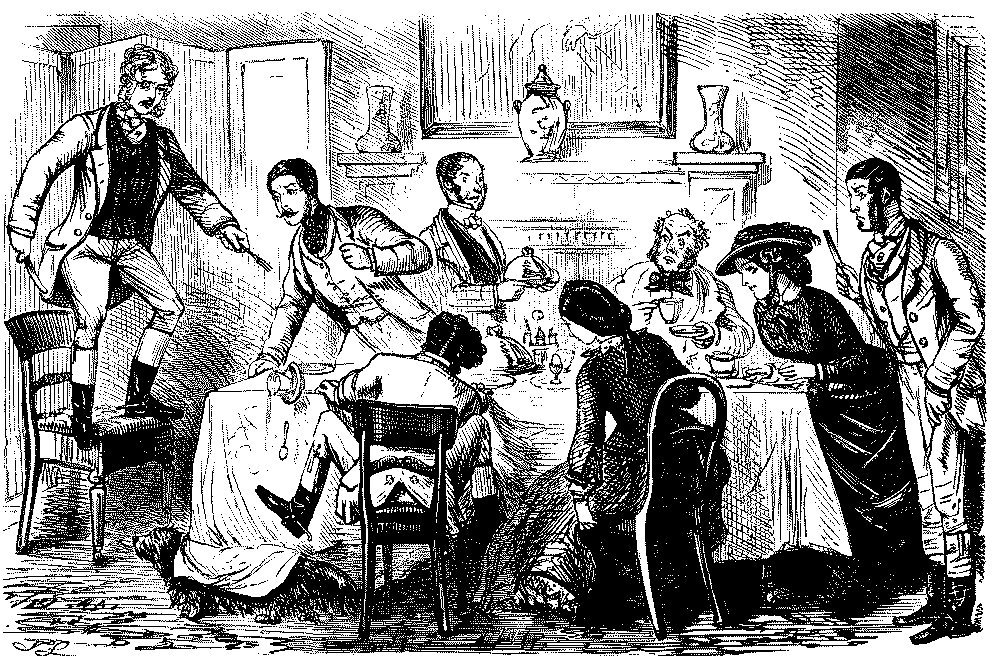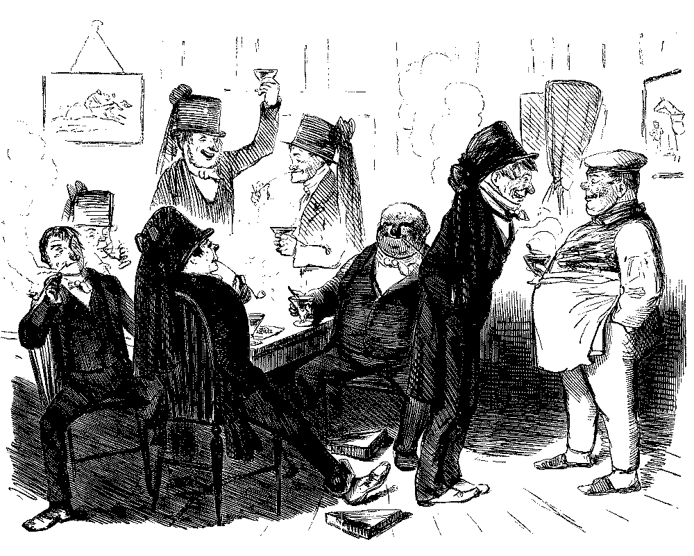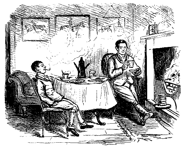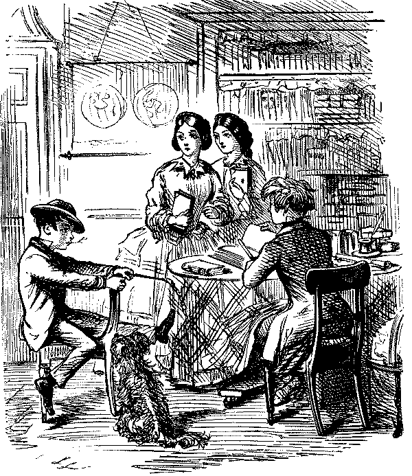 Walter. "AH! DON'T WE, JUST!—LAST HALF THERE WAS CHARLEY BOGLE, AND GEORGE TWISTER AND ME—WE JOINED YOU KNOW—AND HAD TWO POUNDS OF SAUSAGES, COLD, AND A PLUM CAKE, AND A BARREL OF OYSTERS, AND TWO BOTTLES OF CURRANT WINE!—OH, MY EYE! WASN'T IT JOLLY, NEITHER!"
