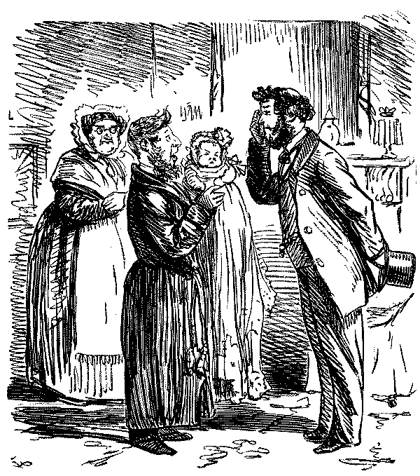Juvenile. "MAMMA, DEAR! DO YOU KNOW THAT GENTLEMAN TICKLED ME WITHOUT BEING INTRODUCED!"