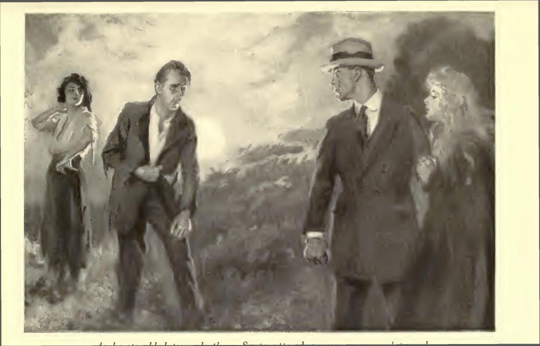 Drawing himself erect, he faced her. Her bantering tone had roused his indignation. Yet, even in his revulsion, he thrilled to the sweetness of her luring eyes, glinting at him palely through the shadows.