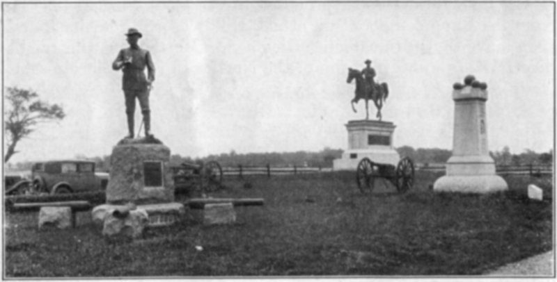 General Reynolds’ position shortly before his death.—Near General Buford’s statue, pointing toward the spectator, is the first gun fired by the Union forces