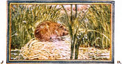 Some were cutting down trees and some were pushing rafts through the water, and some were pounding clay with their flat tails to mend a hole in a dam they were making, and some were working on huts.