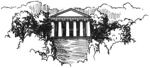 Although the wings with their tall recessed windows and balustrade are quite pleasing, the magnificent portico is the salient architectural feature of the mansion, one of the earliest and best-known examples of Greek Doric porticos in America. This extends 25 feet from the front of the house and has 8 columns 23 feet high and somewhat over 5 feet thick at the base. Early authorities differ as to whether the portico was derived from the smaller, well-proportioned Greek temple at Athens known as the Theseum, or the larger, more imposing temple of Neptune at Paestum, Italy. There is no doubt, however, as to the effectiveness of the architectural style chosen, for no other would have had the strength and massiveness necessary to make the building impressive when viewed from across the river. Yet for all its simplicity and solidity, the proportions of the mansion are so refined as to make it an outstanding example of Greek Classic Revival architecture of the early nineteenth century.