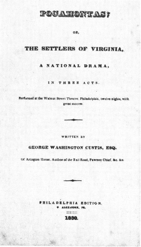 Even more successful were the dramas Custis wrote at this time, based on heroic episodes in the Nation’s past or on inspiring contemporary achievements. The Indian Prophecy used an incident in Washington’s early life as its theme and established a vogue for Indian plays which lasted over 50 years; while the Rail Road was the first one written on that subject in America. Others dramatized such events as the battle of Baltimore and the launching of a new warship. For 10 years his dramatic pieces were staged from Boston to Charleston and did much to develop a distinctive American drama.