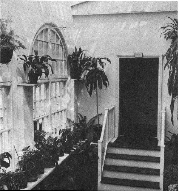 THE CONSERVATORY. Because flowers were important in the life of the Arlington household, it is most appropriate that present-day visitors enter the mansion through the conservatory. Both Mrs. Lee and her mother, Mrs. Custis, were devoted to their gardens and used flowers for decorations throughout the house. Called the “conservatory,” or “greenhouse,” and sometimes the “camellia house,” by those who lived there, this was the room in which they grew their favorite flowers and plants during the winter months or started young ones for transplanting outdoors. The floor of the conservatory has been restored, but the woodwork and most of the windows are original.