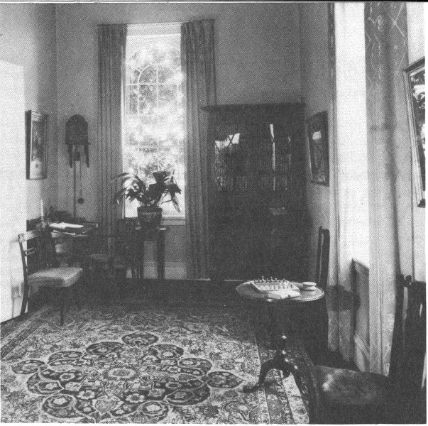THE OFFICE AND STUDY. The management of a large estate like Arlington required an office where business could be transacted and records kept, and this long, narrow room was used as such by both Mr. Custis and Colonel Lee. Here the former worked on his literary efforts and carried on an extensive correspondence concerning agricultural matters and the life of General Washington. In his old age Mr. Custis also used it as his “painting room,” for in 1852 he wrote to a fellow artist: “I have an excellent studio fitted up in the South wing of the House, with a first rate light, ... a stove & everything comfortable.”