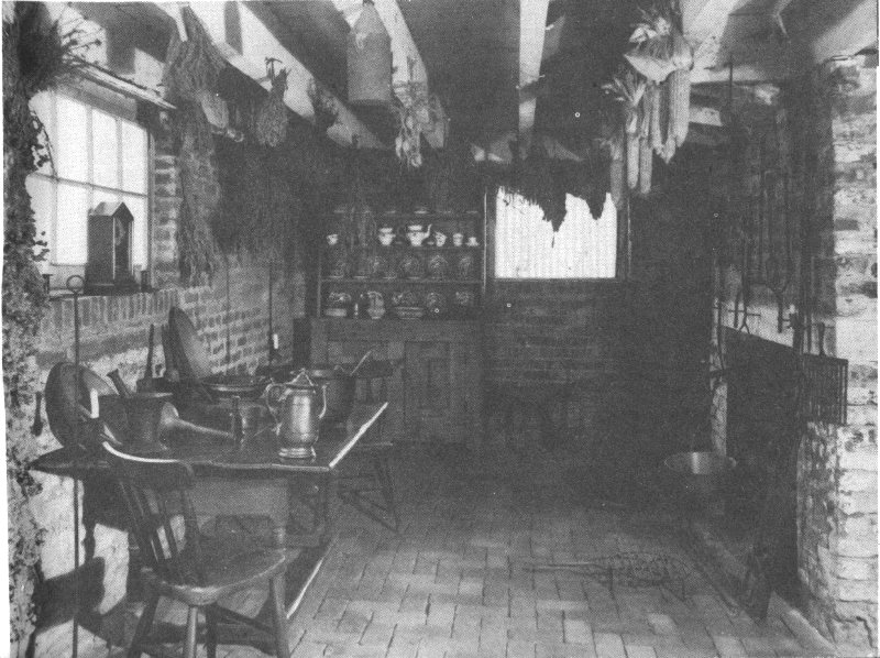 THE WINTER KITCHEN. The huge fireplace in the winter kitchen under the north wing helped to warm the rooms above during the cold months of the year. The portion of the room beyond the chimney was used as a laundry.