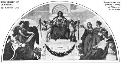 Kenyon Cox, likewise a pupil of the Paris schools under J. L. Gérôme (zhay-rome´), has been largely identified with decorative work throughout the land. A distinguished draftsman and a writer on art as well, Mr. Cox is represented with decorations in the Walker Art Gallery, Bowdoin College, in various state capitols and public libraries, in the Appellate Court of New York and other courthouses throughout the Union, and was awarded the medal of honor for mural painting by the Architectural League in 1910. He too is represented in the mural decorations of the Congressional Library at Washington.