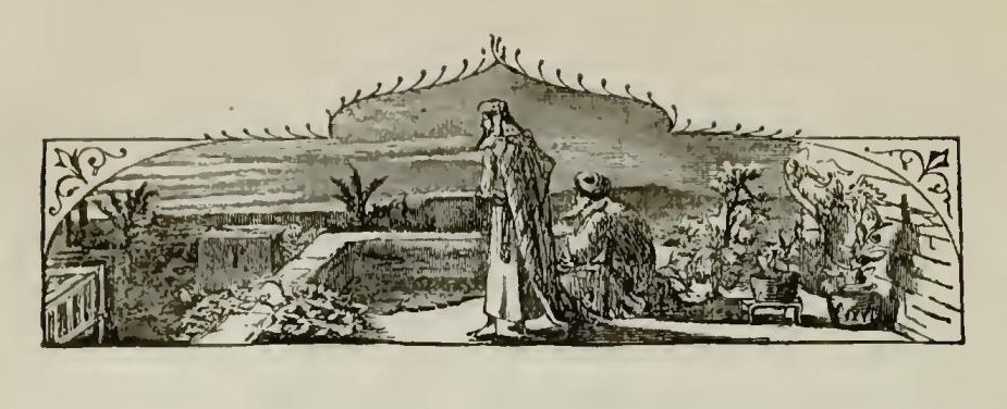 The court is one of the characteristics of an Oriental house. Even the meanest hovels of the lowest classes have something of the kind. The passage from the doorway into the court is 674usually so contrived that no view can be had from the street into it; this is sometimes done by the erection of a wall, or by giving a turn to the passage that leads into the court. Some houses have one court, others two, and three are not uncommon. If a house has but one court, it is generally an open space or quadrangle, round which the apartments for the inmates, and in country places also the sheds for the cattle, are arranged. In the very poorest of these there is merely one apartment, and a shed for cattle, and the court or yard is surrounded with a hedge of thorny boughs, having only one court, of a far superior kind. Entering into the courtyard you see around you a number of little buildings, not deficient in convenience, and occasionally presenting a certain air of elegance—though frequently constructed on no regular plan. In these are found various little chambers, one piled upon the other, the half-roof of which always forms a terrace for walking, from which a little flight of steps or ladder leads to the dwelling-house, or to the upper terrace. This court is well paved; on one side doors lead to the apartments of the family, and on the other to those of the servants. They are often beautified with a number of fragrant trees and marble fountains, and compassed round with splendid apartments and divans. The divans are floored and adorned on the sides with a variety of inlaid marbles wrought in interlacing patterns. They are placed on all sides of the court, so that at one or other of them, shade or sunshine can always be enjoyed at pleasure. In the summer season, or when a large company is to be received, the court is usually sheltered from the heat and inclemencies of the weather by a curtain or awning, which, being expanded upon ropes from one wall to the other, may be folded or unfolded at pleasure.