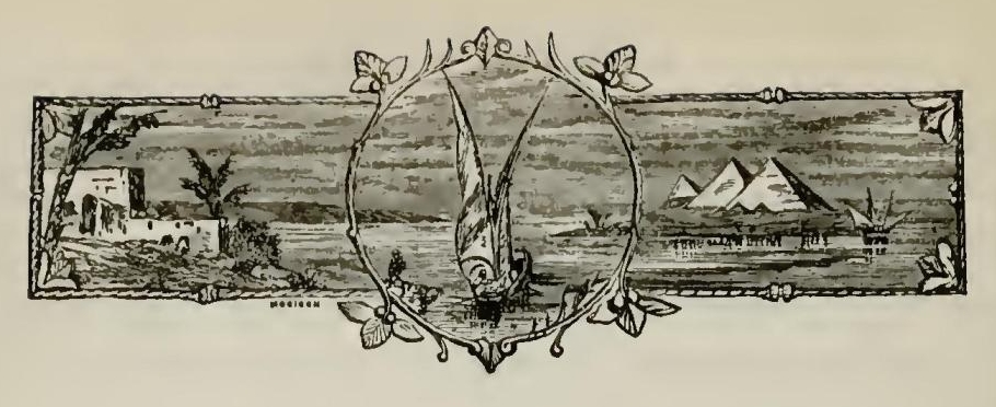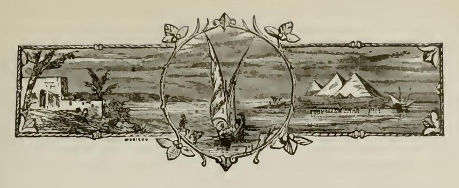 And farewell to the Nile, that mysterious river whose sources are yet unknown, and on whose banks have been written through sixty centuries many important pages of the world’s history. Mighty and brilliant empires have there risen and fallen; great cities have flourished and disappeared. Persian and Greek and Roman have come and gone; Pagan and Jew and Christian and Moslem have built their temples, and have seen the glory and decline of their religions; on its sleepy waters floated the frail bark that held the infant Moses, and beside them rested the Holy family when it fled from Bethlehem that the Saviour child might escape the fury of Herod.