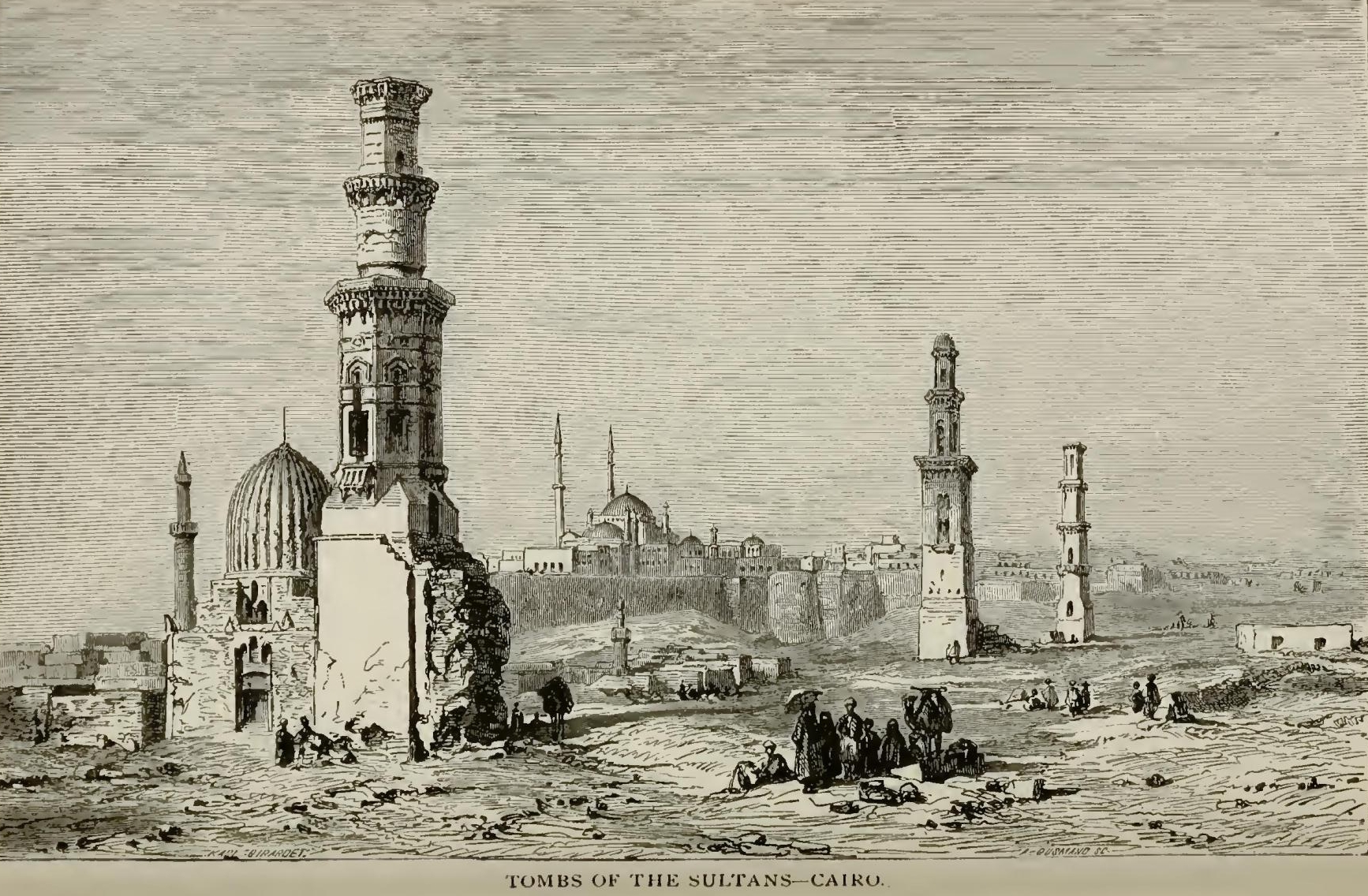 Cairo faded in the distance. We watched the arrowy spires of the Mosque of Mohammed Ali till they became the faintest of lines against the sky, and then went out altogether; we traced the group of mosques that cover the tombs of the Caliphs and are backed by the sandy hills of the Mokattam, and we studied the ensemble of mosques and minarets, and palm-trees, as long as study was possible. Then we turned to the grand old pyramids away on the western horizon, and when these disappeared we fixed our eyes on the course of the Nile, and the line that marked the termination of the fertile land and the beginning of the Desert.