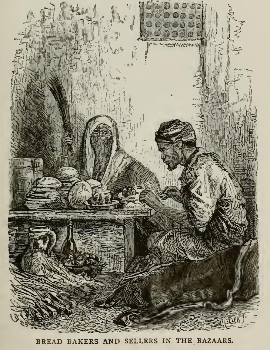 The Arabs are peculiarly sensitive to noisome smells, and in a city they may frequently be observed hurrying along with their 675nostrils closed by a corner of the kerchief, to avoid the effluvia which surrounds them. This is one reason why they always prefer pitching their tents without, to residing within the walls.