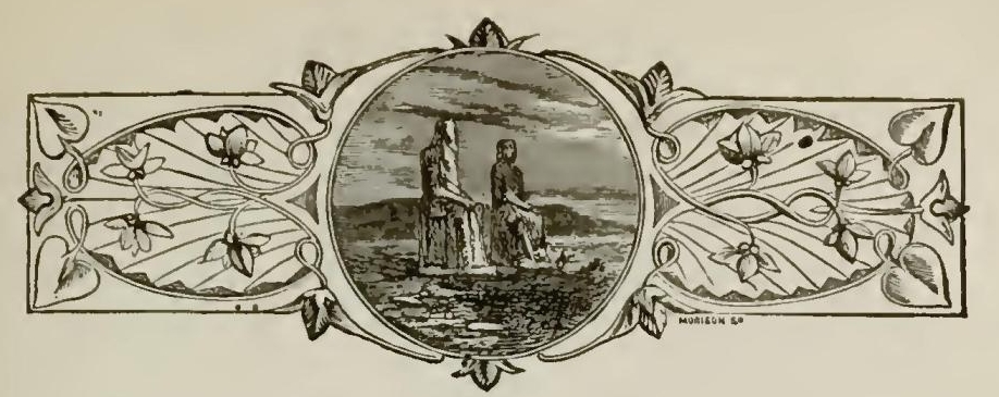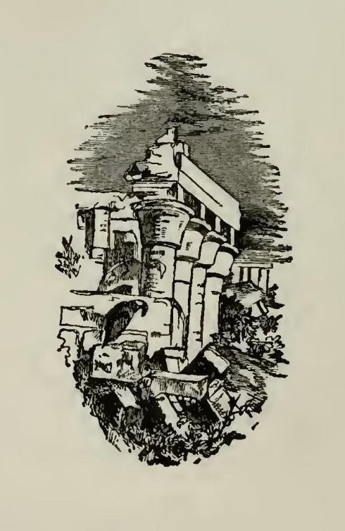 Farewell to the land of the purest sky, and the most lovely winter climate that the world can boast; to the temples and tombs that tell us of a people far back in the misty past—a people whose mechanical skill surpass that of all those who have followed them, and before whose monuments we stand with bowed and reverential heads; and to the shrines of Isis and Osiris to whose mystic worship the most powerful nation of its time was devoted, and for whom the most gigantic temples were erected.