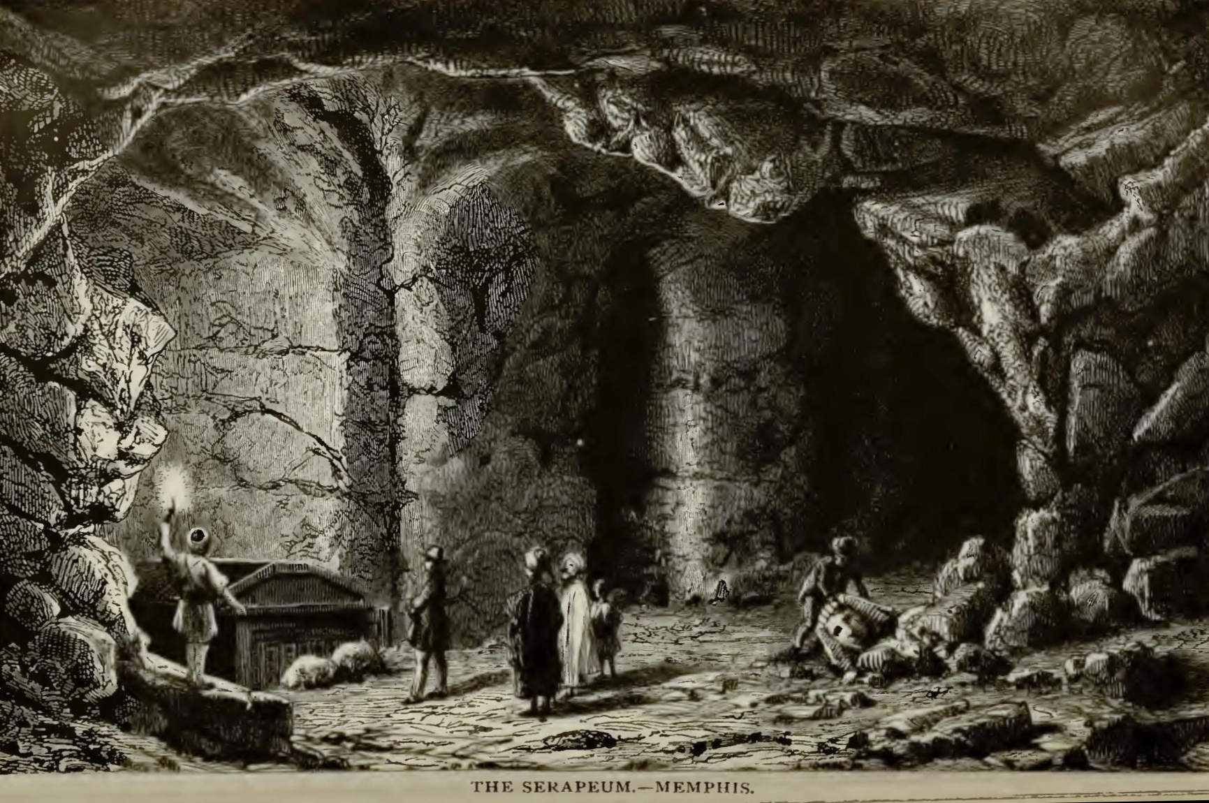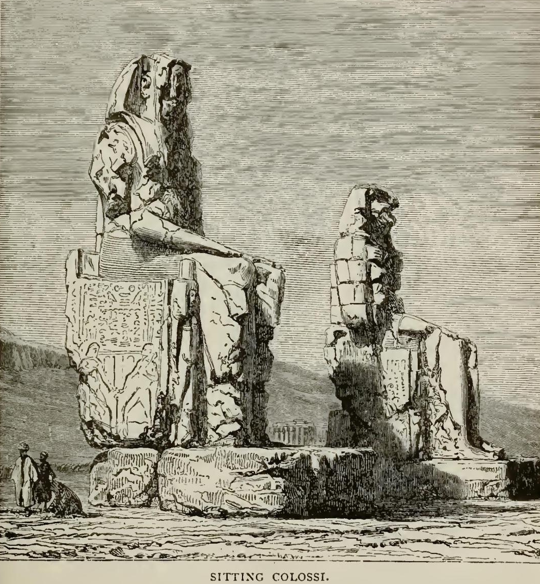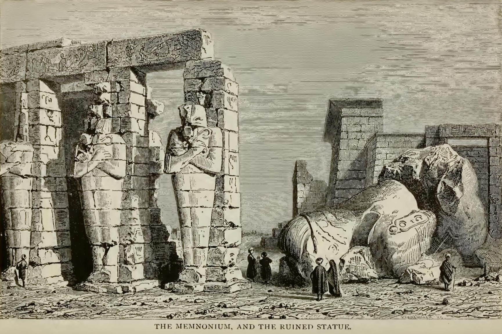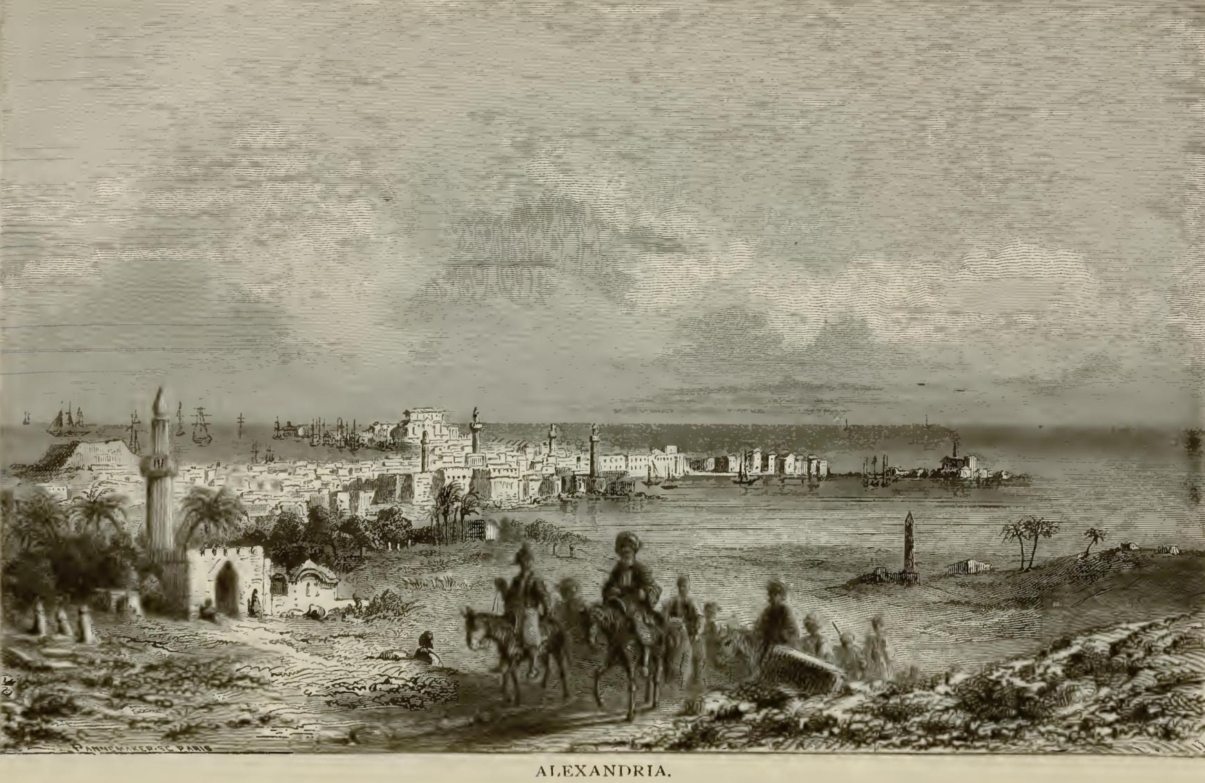 A paragraph with the heading “Ancient Alexandria” might be about as brief as the famous chapter on the snakes of Ireland. Of the capital that contained a population of half a million, a library of I don’t know how many thousand volumes, temples, palaces, and piles stupendous, there are little more than vestiges remaining. Here and there may be found a few relics; walls and foundations of buildings may be traced in a few localities, and there are some mutilated statues and other fragments that have survived the touch of Decay’s Effacing Fingers.