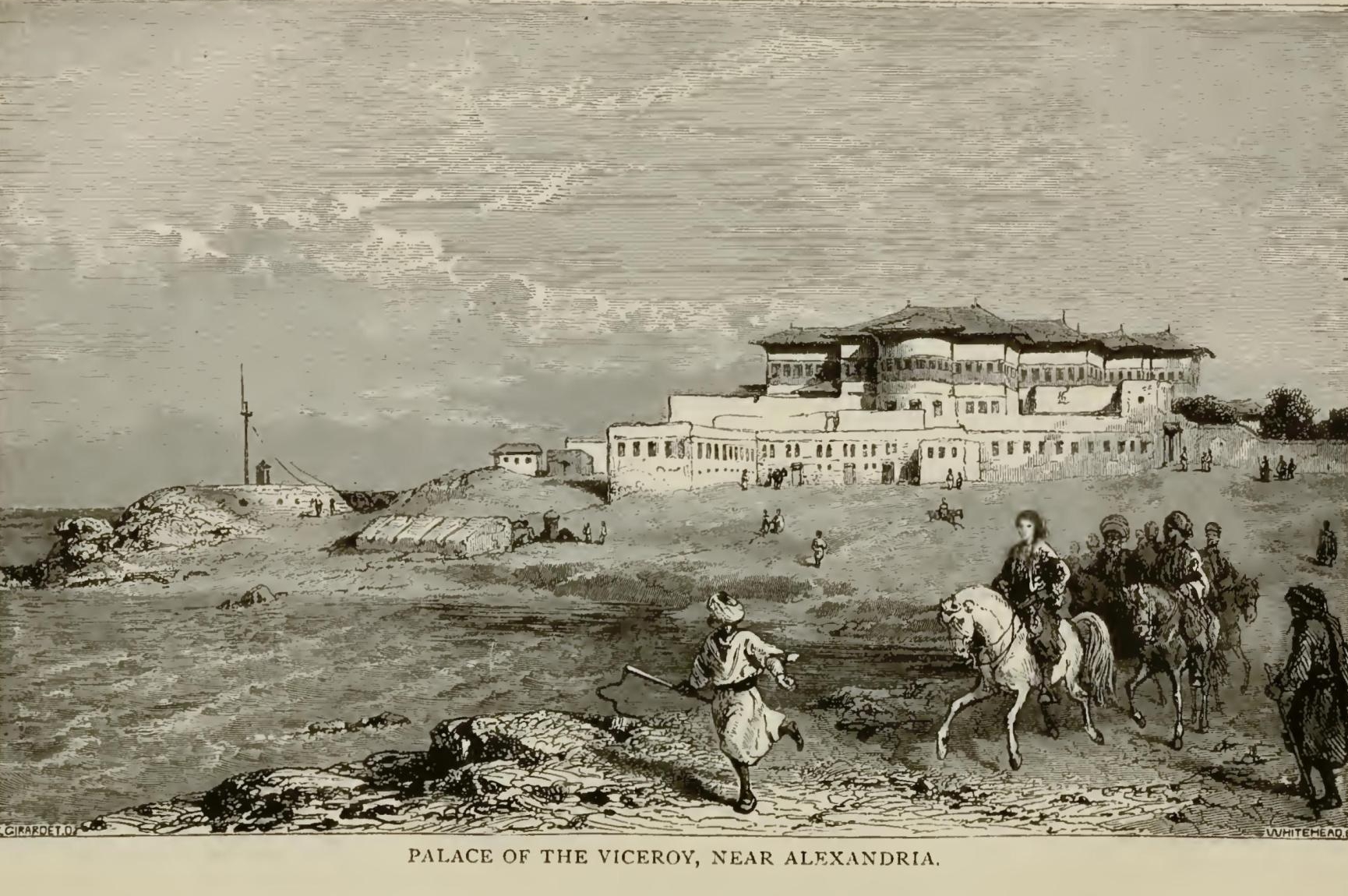 The canal was full of boats as we passed it; we could not see them on account of the high bank, but their masts and sails were visible, and so we argued that the boats were there. Near Alexandria the banks of the canal are bordered with pretty villas and gardens for some distance, and some of the villas are quite picturesque. It has become the fashion for wealthy Alexandrians to have their residences in this locality, and there is a watering-place and popular resort known as Ramleh about half an hour’s ride from the city. The Viceroy has a palace there, and generally resides in it during a portion of the summer.