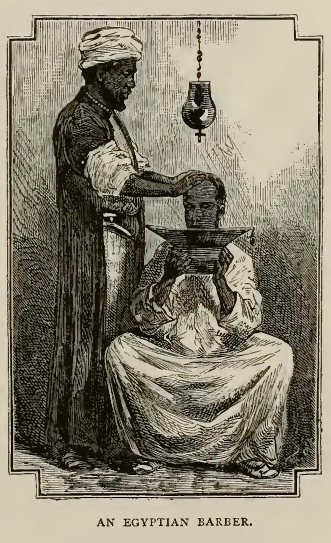 Unfortunately the winter of 1873-4 was very bad, the worst ever known in Cairo, so the old residents said. There was a great deal of rain; altogether during the winter it rained on seventeen days; sometimes only for a few minutes, and again there were several hours of pouring rain. Ordinarily there will be from six to ten showers in the course of the winter, and for the rest of the time there is the clear sky of Egypt, day after day, and night after night. I was there nearly four months and aired my umbrella only twice in that time though there were two other occasions when I would have been glad to air it; I was caught in heavy showers with no better protection than my cane, and 668was forced to go home in a condition like that of a cat after an involuntary bath.