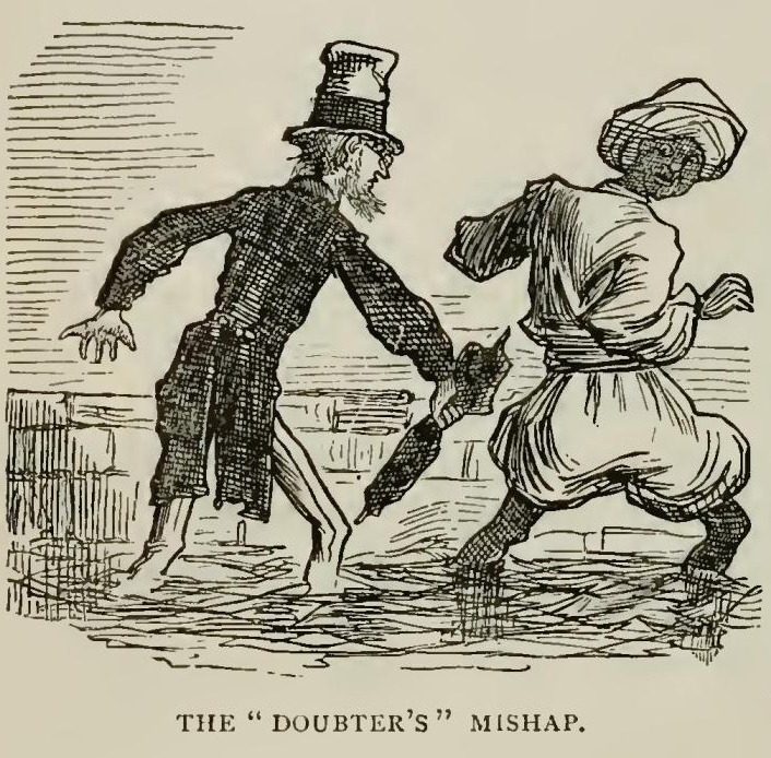 The Last Stroll around the Mooskee—Talking to the Donkey-Boys and Dragomen—A Queer Lot—A Pertinacious Customer—The Judge’s Expedient—A Little Humbug—Rich American Tourists “in a Horn”—The Dragoman’s Salutation “Sing Sing!”—Getting Rid of a Nuisance—Buying Keepsakes—Out of the Desert into a Garden—Curiosities for Farmers—A Mohammedan Festival—Curious Sights—Snake Charmers—How they do it—Music-Loving Reptiles—On an Egyptian Railroad—Pompey’s Pillar—A Ludicrous Accident—Alexandria, its Sights and Scenes—Climbing Pompey’s Pillar—A Daring Sailor—An Arab Swindle—Going on Board the Steamer—Farewell to Egypt.