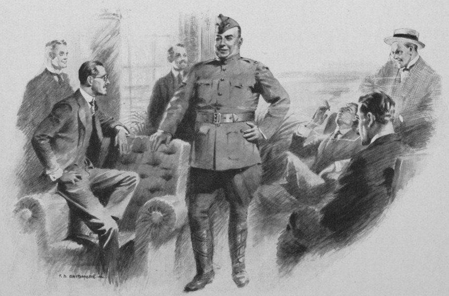 “I fell down when it was my ball. It’s my ball now, Shipp, and I’ve fallen down again. I’ve led a pretty easy, useless life, these late years, but—I feel this thing in Europe more than I thought I could feel anything. I’ve contributed here and there, let my man go, and economized generally. I’ve adopted whole litters of French orphans, and equipped ambulance units, and done all the usual things the nice people are doing, but I was out of the game, and I wanted—Lord! how I wanted to be in it! When we declared war, I yelled! I went crazy. And then along came your wire to join you in this Plattsburg course. Good old Shipp! I knew you’d get on the job, and it raised a lump in my throat to realize that you were sure of me. I—was never so happy”—the speaker choked briefly—“as while waiting for the day to arrive. Now I’ve fumbled the pass. I’m on the sidelines.”