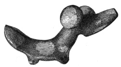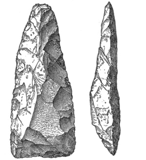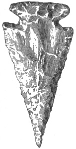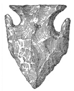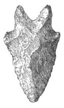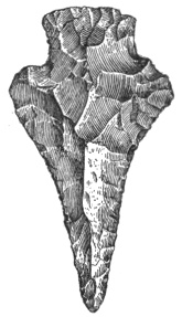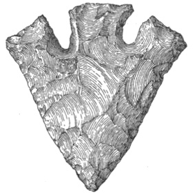 According to Dr. E. B. Tylor, the flint arrows of the Dakota, the Apache, or the Comanche might easily be mistaken for the weapons dug up on the banks of the Thames;1 while cores of flint in Scandinavia and of obsidian in Mexico are exactly alike,2 and a tray filled with European arrowheads can not be distinguished from a tray of American ones.3 Prof. Otis T. Mason observes that the great variety of form in such weapons after they are finished is due partly to nature and partly to the workman’s desire to produce a certain kind of implement. All sorts of pebbles lie at the hand of the savage mechanic, none of them just what he wants. He selects the best.4 Perhaps the truth about the shape is that the savage found it thus and let it so remain.5 59