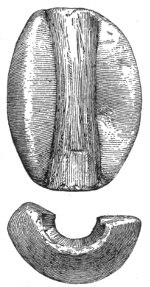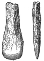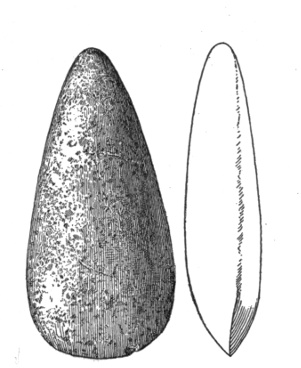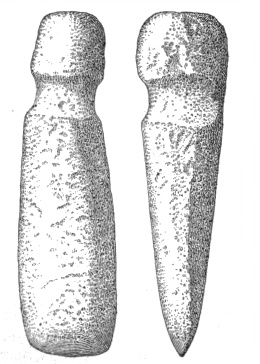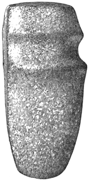 In the eastern and interior states, the grooved axes are far more abundant than the celts of the same size9, because as a rule only the larger implements of this class are grooved. All the ordinary varieties of axes and hatchets are found about Lake Champlain, by far the most abundant being celts, or grooveless axes.10