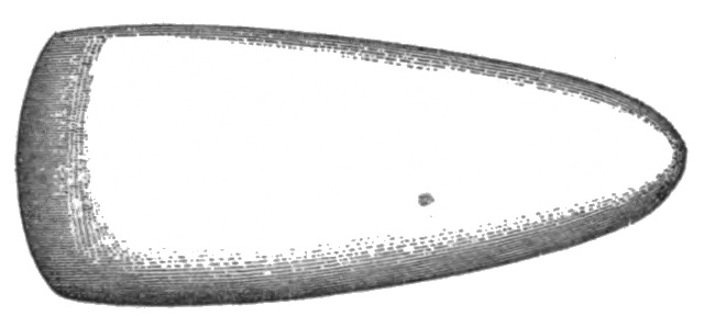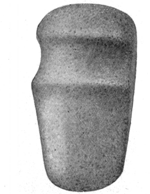 In nearly every instance the groove of an ax with a groove projection extends entirely around with practically the same depth, and the blade 65 of the ax has an elliptical section. There are, however, a few with the back flattened; and while many of the second division may be similar in section, and in having the groove extend entirely around, yet in this class are to be placed nearly all of those only partly encircled by a groove or showing some other section than the ellipse.