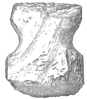 According to Adair and other early observers, the southern Indians had axes of stone, around the grooved heads of which they twisted hickory withes to serve as handles; with these they deadened timber by girdling or cutting through the bark.11 According to travelers of a later generation among the western Indians, similar implements were used on the plains to chop up the vertebræ of buffaloes, which were boiled to obtain the marrow.12