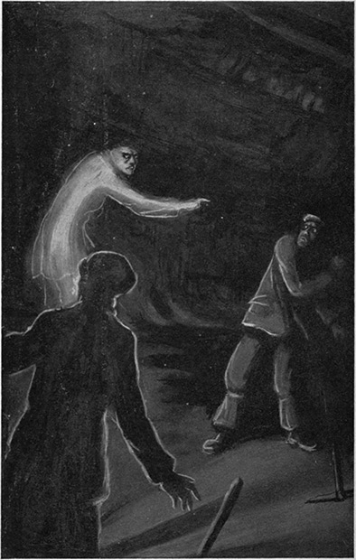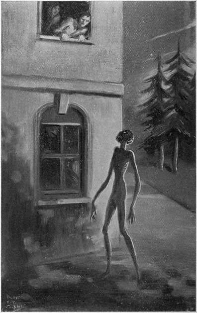 “He ran into the drawing-room first and found my mother on the floor, just reviving from a faint. Lighting the gas, he fetched her some brandy, and then, bidding[20] me stay with her, he hastened upstairs to Teddy. The latter was very badly frightened, and it was some days before he was well enough to give anything like a coherent account of what had happened. Of course, mother and father told Teddy that the queer figure they had seen was some friend of the servants, who had called while they were out, but I suppose they deemed me old enough to know the truth, for they discussed the incident openly in my presence. It appears that my mother had been quietly knitting in the drawing-room, when she suddenly felt very cold, and rising from her chair, with the intention of closing the door, found herself confronted by a hideous form. Subsequently, my father made a thorough search of the house, but he found no one, and as all the windows were fastened and the doors locked on the inside, we could only come to the conclusion that the figure my mother and Teddy and I had all seen was a ghost. A few days later it appeared to my father. He was coming out of his bedroom, when he saw a woman steal stealthily out of a room on the same landing and creep downstairs in front of him. There was something about her so intensely sinister that he felt chilled; but, determining to find out who she was, he followed her, and catching her up, demanded her name. There was a chuckling answer, the figure instantly disappeared, and a number of invisible somethings clattered down the stairs past him.