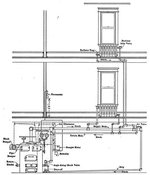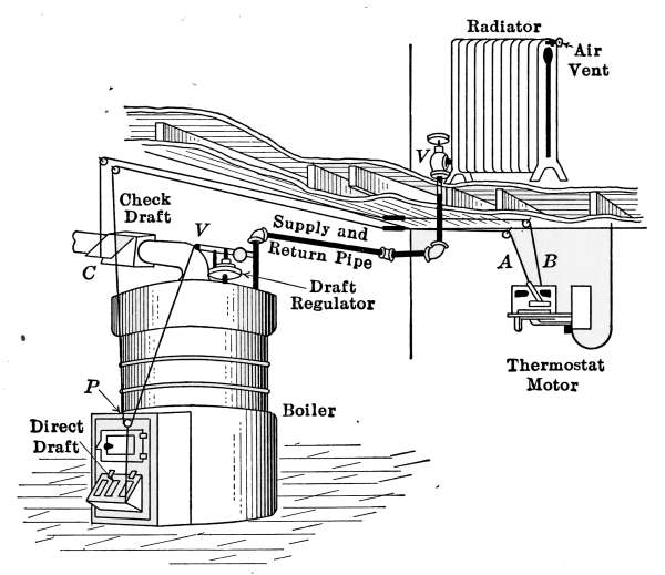 | Temperature Regulation Hand Regulation—Damper Regulator for Steam Boiler—Damper Regulators for Hot-water Furnaces—The Thermostat Motor—Combined Thermostat and Damper Regulator—Thermostat-motor Connections. |