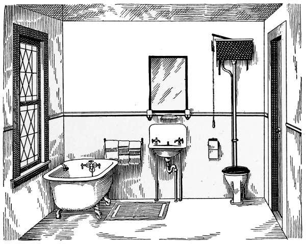 | Plumbing Water Supply—Water Cocks—Bibb-cocks—Self-closing Bibbs—Lever-handle Bibbs—Fuller Cocks—Wash-tray Bibbs—Basin Cocks—Pantry Cocks—Sill Cocks—Valves—Kitchen and Laundry Fixtures—The Bathroom—Bath Tubs—Wash Stands and Lavatories—Traps—Back-venting—Soil Pipe—Water Closets—Washout Closets—Washdown Closets—Siphon-jet Closet—Flush Tanks—Low-down Flush Tank—Opening Stopped Pipes—Sewer Gas—Range Boilers—The Water-back—Excessive Pressure—Blow-off Cock—Location of Range Boiler—Double Heater Connections—Horizontal Range Boilers—Tank Heaters—Overheater Water—Furnace Hot-water Heaters—Instantaneous Heaters. |