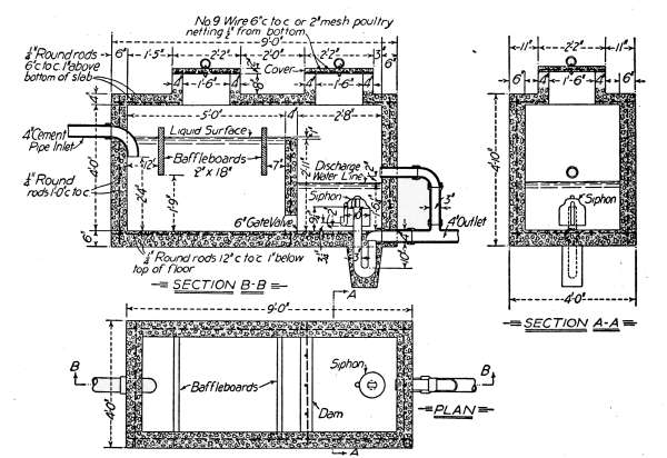 Any building arranged with toilet, kitchen and laundry conveniences must be provided with some form of sewage disposal. Private disposal plants are made to meet many conditions of service. The mechanical construction and principles of operation are not difficult to comprehend and their adaptation to a given service is only an intelligent conception of the possible conditions of disposal, dependent on the natural surroundings.