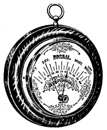 | Atmospheric Humidity Humidity of the Air—Relative Humidity—The Hygrometer—The Hygrodeik—Dial Hygrometers—The Swiss Cottage “Barometer”—Dew-point—To Determine the Dew-point—Frost Prediction—Prevention of Frost—Humidifying Apparatus. |
