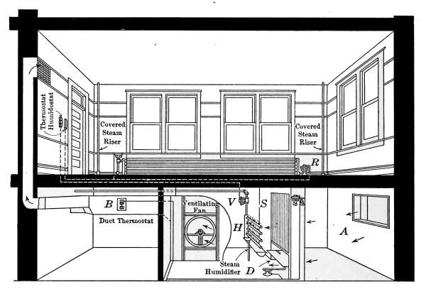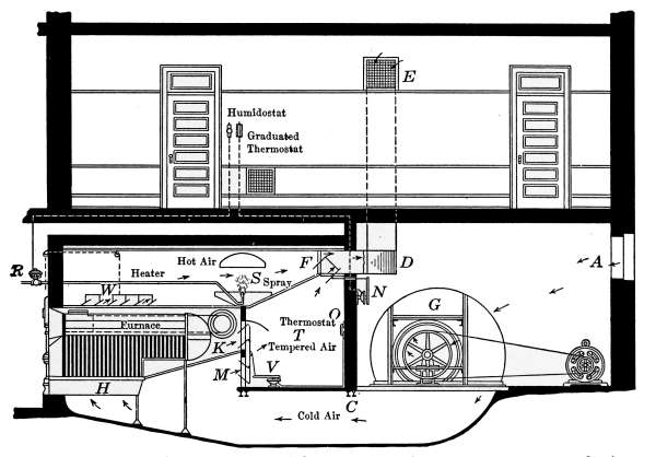 | Ventilation 196 Quantity of Air Discharged by a Flue—Cost of Ventilation—The Wolpert Air Tester—Pneumatic Temperature Regulation—Mechanical Ventilation—The Plenum Method—Ventilation Apparatus—Air Conditioning—Humidifying Plants—Vaporization as a Cooling Agent—Air-cooling Plants—Humidity Control. |
