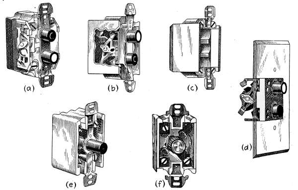 —Local wall switches may be selected from the various styles shown in Figs. 270,a, b, c, d and e.