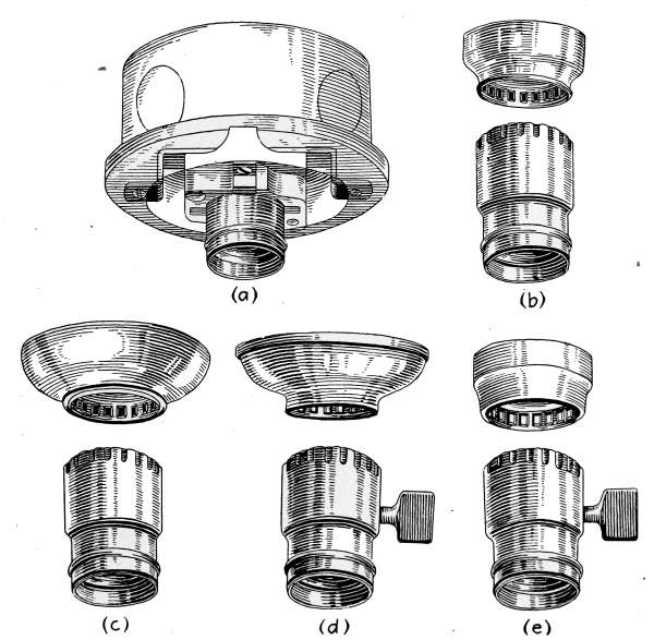 —One-light ceiling receptacles may be selected from the types shown in Figs. 272,a, b, c, d and e.
