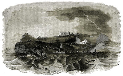 WITH our face to the northward, we are now skirting along the western coast of Italy. The air is crisp and cold, the sky soft and clear. Yonder, scattered over the bare hillside to our right, are many rude huts and humble peasant homes. The smoke slowly rising from the low chimneys curls up and on, and still up, until it stands like so many slender columns leaning against the sky for support.