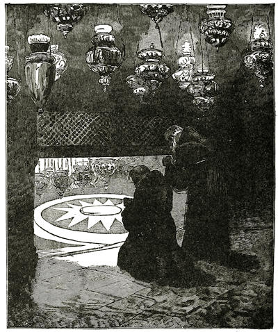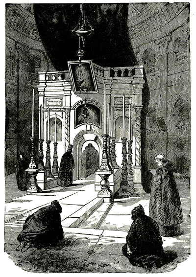 Any one of the four churches mentioned has at least a dozen altars—St. Peter’s has twenty-nine—and upon each altar princely fortunes have been lavished. Each is a marvel of artistic beauty; each glows with burnished gold, and sparkles with precious stones. The evening sun, softened and mellowed by the many-colored glass through which it is reflected, falls like golden fire upon these shrines. The statues standing around and the angels hovering above the altars seem warmed into life by this radiant glow; the marble men struggle to speak, and the sculptured angels spread their wings and try to rise in the glorified atmosphere. One would naturally think that, in these shrines, the unspeakable splendor of the whole edifice would be intensified and gathered to a focus, but not so. It would be true elsewhere, but here they are of no separate account. They all “melt away into the vast, sunny breath,[552]” each contributing its little toward “the grandeur of the whole.”