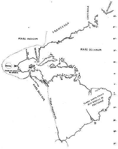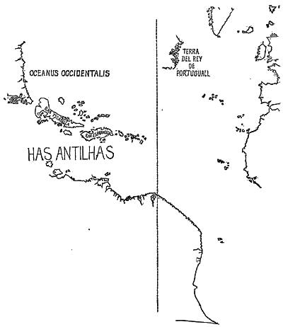 [1591] [It will be remembered that the original Bull of 1493 fixed the meridian 100 leagues (say 400 miles) west of the Azores or Cape De Verde Islands, supposing them to lie north and south of each other; whereas the limit in force after June 7, 1494, was 370 leagues (say 1,080 miles) west of the Azores, since Portugal, complaining of the first limit, had negotiated with Spain for a new limit, the Pope assenting; and this final limit was confirmed by a convention at Tordesillas at the date above given. Cf. Popellinière, Les trois mondes, Paris, 1582; Baronius, Annales (ed. by Brovius, Rome), vol. xix.; Solorzano, Politica Indiana.—Ed.]