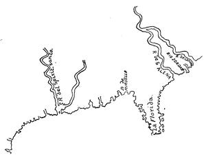 [1607] Pigafetta has preserved the vocabulary of ninety words which in this way he made. The words, he says, are to be pronounced in the throat. A few of the words are these: Ears, sanc; eyes, ather; nose, or; breast, othey; eyelids, sechechiel; nostrils, oresche; mouth, piam; a chief, hez.