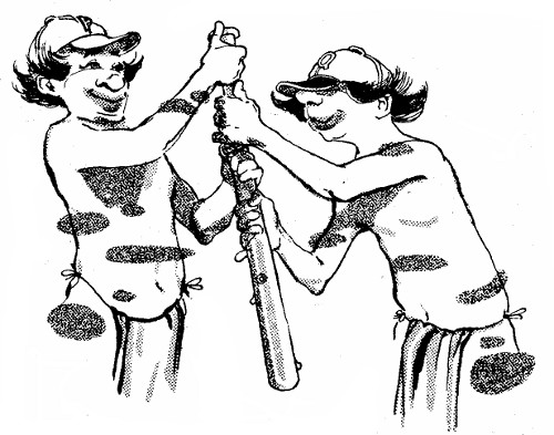 "Billbrad say no baseball until work done," said Moahlo sadly to Adlaa. "Sometimes Billbrad talk like southpaw pitcher."