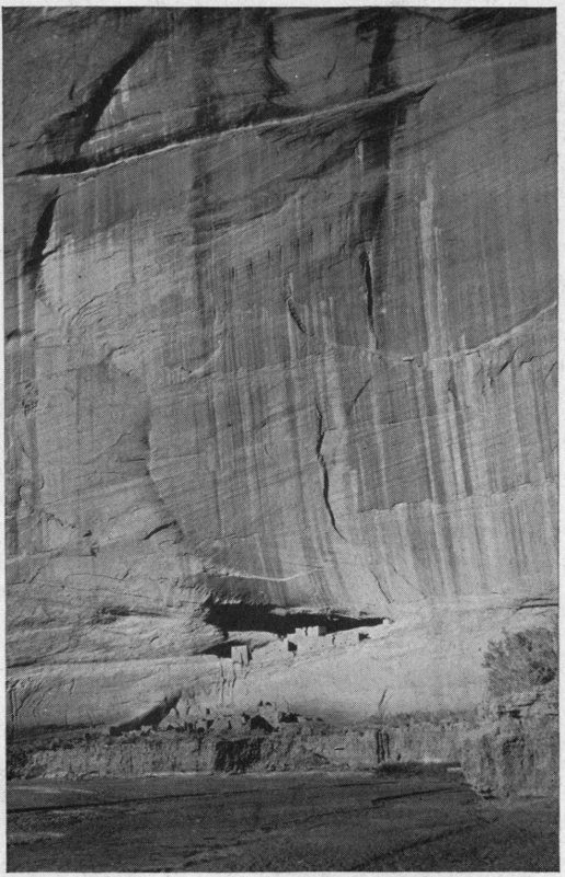 Phoenix is the State capital, a very modern little city dating from 1817, with a population of perhaps 20,000. There is a touch of poetry in the name, which was given to symbolize the rising of a new civilization from the ashes of that prehistoric culture the evidences of whose existence cover so much of Southern Arizona. Here, where 50 years ago was pure desert lorded over by the giant Sahuaro—that huge tree-cactus which is Arizona’s State emblem—we find today surrounding Phoenix a pleasant land of ranches watered by full irrigation canals flowing in the shade of palms and cottonwoods, where besides the common staples of potatoes, corn and alfalfa, there is the exotic grace of the orange and the fig, the olive, the date and the apricot. This is the valley of the Salt River, whose waters are impounded by the huge Roosevelt Dam, some 80 miles east of Phoenix. Travelers desirous of studying desert reclamation will 190 find Phoenix a good center for their observations.