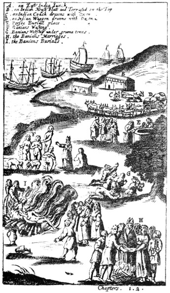 These Persees are a People descended from the antient Persians, who lived in much splendor, but warrs coming among them, they were dissipated, and the Mahometans who invaded them, compelled several to leave their antient Religion for that of the Mahometan: which they refusing, exposed themselves to a voluntary banishment, and therefore carried what of their substance they could with them: they sought for a new place of habitation, and at length found it in this Country, where they now inhabit, being admitted to use their own Religion, but yielding themselves in subjection to the government of the Nation, and paying homage and tribute, their Religion being different from the rest of the Inhabitants, I shall thus describe to you.