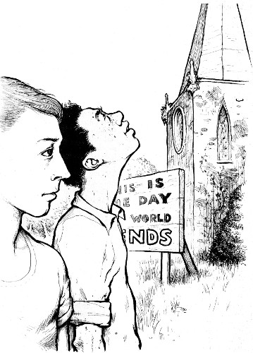 I went out, remembering not to slam the door. It wasn't much, but it showed thoughtfulness. I went past the church and looked at the sign that was set diagonally at the corner so that it could be read from both streets. There it was in big letters, quoting from the papers: THIS IS THE DAY THE WORLD ENDS! Some smart reporter had thought it up and it seemed so true that that was the only way it was ever said. Me? I didn't know.