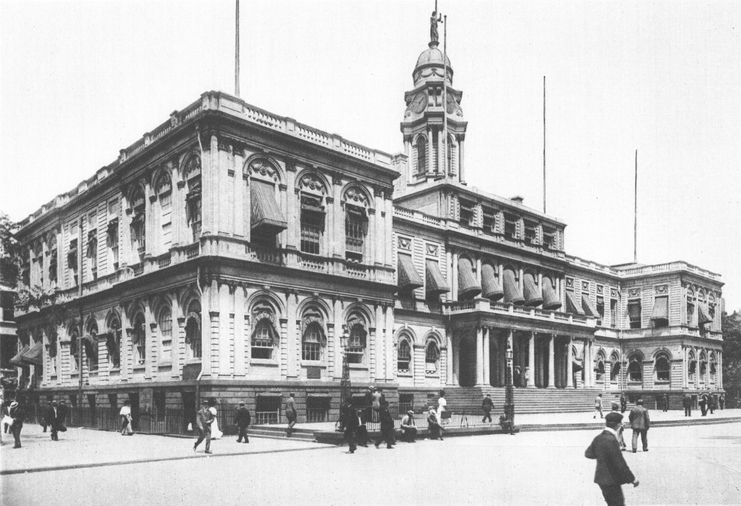 A number of years ago there was a proposal to remove the City Hall from its present position because it was no longer large enough for the city government and was too far from the center of Greater New York. Then, because of its architectural merit as well as its history, such protest was aroused that both building and park have been kept intact.