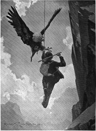 Only a few yards did the old eagle fly; then she wheeled and, with the speed of an arrow, shot once more at the man hanging at the end of the rope before her nest.