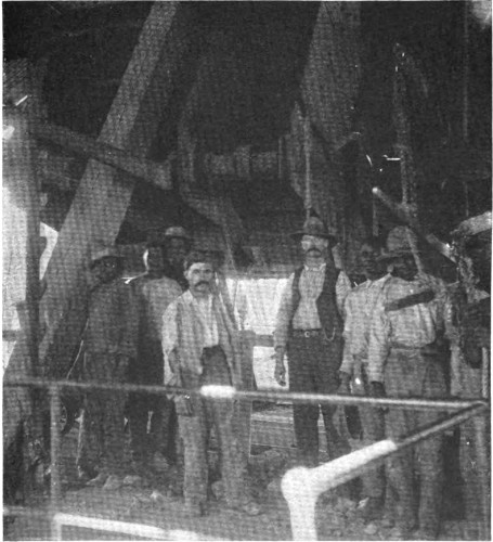 A six-inch fuse was then placed in the gun 513 and lighted, and everyone retired into an adjacent pit, dragging old Jack with them. For a moment all was silence; then came an awful ear-splitting report, and a cloud of dust settled over the rifle pit. When it cleared away all trace of Flagett’s cannon and the stump as well had disappeared. Not a piece of either was ever found, though Hall Smith, who was in charge of the cook-camp half a mile farther back, swore that he heard a piece of pipe whistle over his head a few seconds after the explosion.