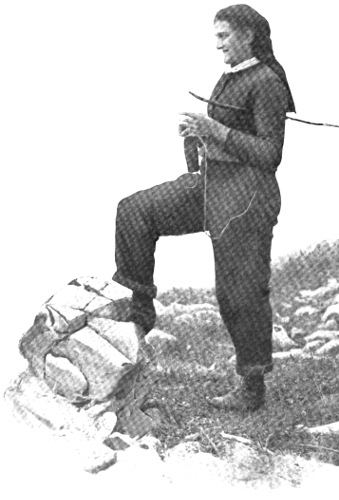Then the rope was hauled back and a tight loop made in one end. This was paid out over the edge of the cliff until it hung directly in front of the eagles’ nest. The other end of the rope was hitched round a convenient tree.