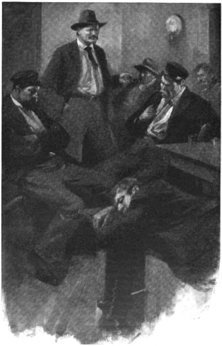While the White Caps were burying their dead, the horses and wagons were brought up and the outfit cooked their breakfast on the embers of the burning logs. Then, placing their wounded comrade in a supply wagon, they moved up the river in search of more victims. Surrounding two ranches, they crept up to them, only to find them vacant; they were too late, for their firing had attracted the attention of a rancher named Whitmore as he stopped to water his horse at the ford a mile below Champion’s ranch, and he had ridden up close enough to see the finish of the unequal fight, and had then spurred his horse up the river, 512 warning the settlers that the much-talked-of White Cap invasion had begun. The news spread over the country like wildfire, and, instead of fleeing from the danger-zone, the ranchers and cow-punchers buckled on their guns and headed for the scene of the fight. They started in ones and twos, but as they got closer in they began to gather in bunches of ten or twelve, all spoiling for a fight, if there was a prospect of avenging the death of their comrades.