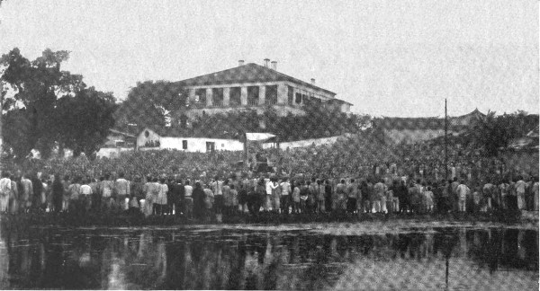 IN SOME PARTS OF CHINA IT IS STILL CONSIDERED A VERY MERITORIOUS ACT FOR A WIDOW TO COMMIT SUICIDE AFTER THE DEATH OF HER HUSBAND—THIS PHOTOGRAPH SHOWS A WIDOW ABOUT TO MAKE AWAY WITH HERSELF IN THE PRESENCE OF AN IMMENSE AND ADMIRING CROWD.