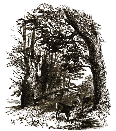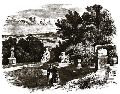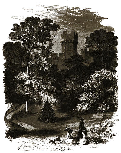 [12] The grounds are on Mondays freely open to all comers; but on any day visitors will be admitted to them by application at the Manor Office, Stonehouse, near to the ferry by which passengers are conveyed across. There is, however, a road for carriages; but that implies a drive of twelve miles there and twelve miles back, besides the drive of five or six miles round the Park.
