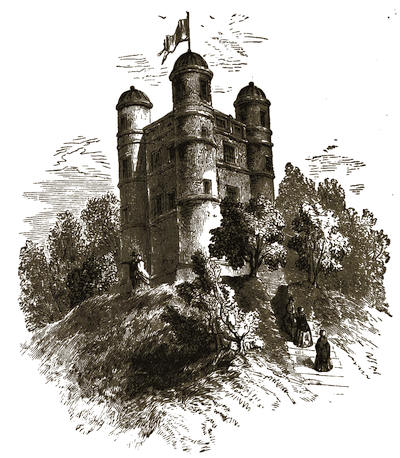 [44] The old castle of Henderskelf, an ancient seat of the Greystocks, was built in the reign of Edward III.; it passed into the hands of the Howards by the marriage of Belted Will with Bessie of the braid apron, “the word Henderskelf; meaning hundred-hill, or the hill where the hundreds meet.”