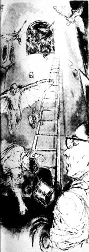 Em said to my wife, "There must have been a hundred of them. They kept coming and coming and flying into that hatch. Then they began dumping out all the recording instruments. The men tried to run a motor-driven ladder up to the ship and those owls hit the driver on the head and knocked him out with some kind of instrument."